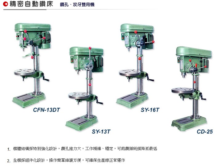 營業項目: 精密攻牙機,精密鑽床,精密鑽孔機,油壓桌上車床,專用機,攻牙器